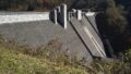 相俣ダムにはもうひとつの特徴があり、ダム湖の左岸がコンクリートで遮水されています。湛水試験中に漏水があったようで、コンクリートで処理して漏水を防いだようですね。