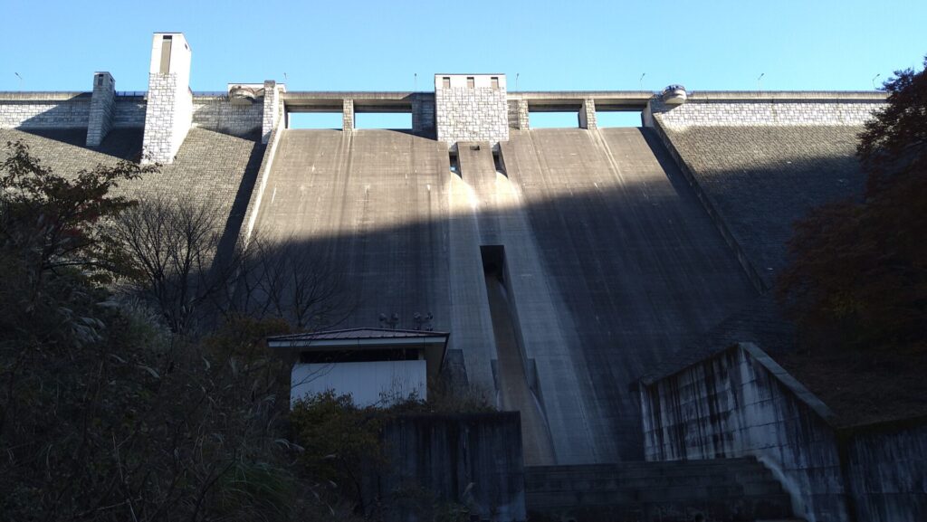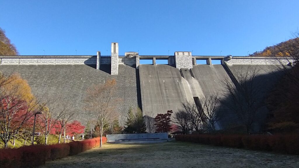 こちらがダム下の公園から見た様子で、いい感じで眺めることができますね。