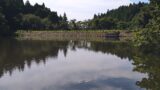 こちらは、再び訪れたときの様子です。草が刈られていて、下流側から堤体をよく見ることができました。
