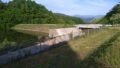 こちらは、左岸の上流側から見た様子です。堤頂長が140メートル(堤高は18メートル)あり、堤体は横長の印象があります。