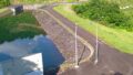 堤体の外側は土が盛られており、アースダムなのがうかがえます。一見すると、土手や堤防のようにも見えそうです。