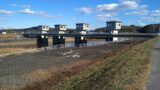こちらは右岸付近から見た様子で、左岸側の堤体には放流設備が設置されています。